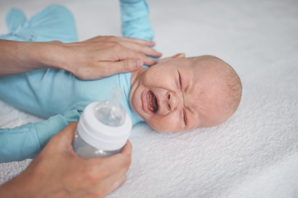 - Gaz çıkarma ve karında şişlik, özellikle ağlama sonrası daha belirgin hale gelir ve bebeğin huzursuzluğunu artırır.